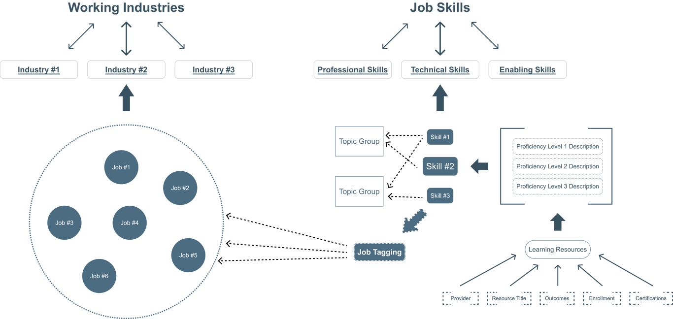Identifying hundreds of skills across multiple industries and mapping to corresponding learning resources at the proficiency level, I built the repository from start to finish.