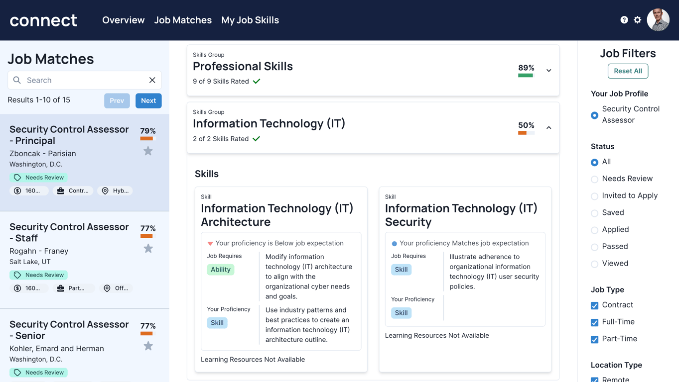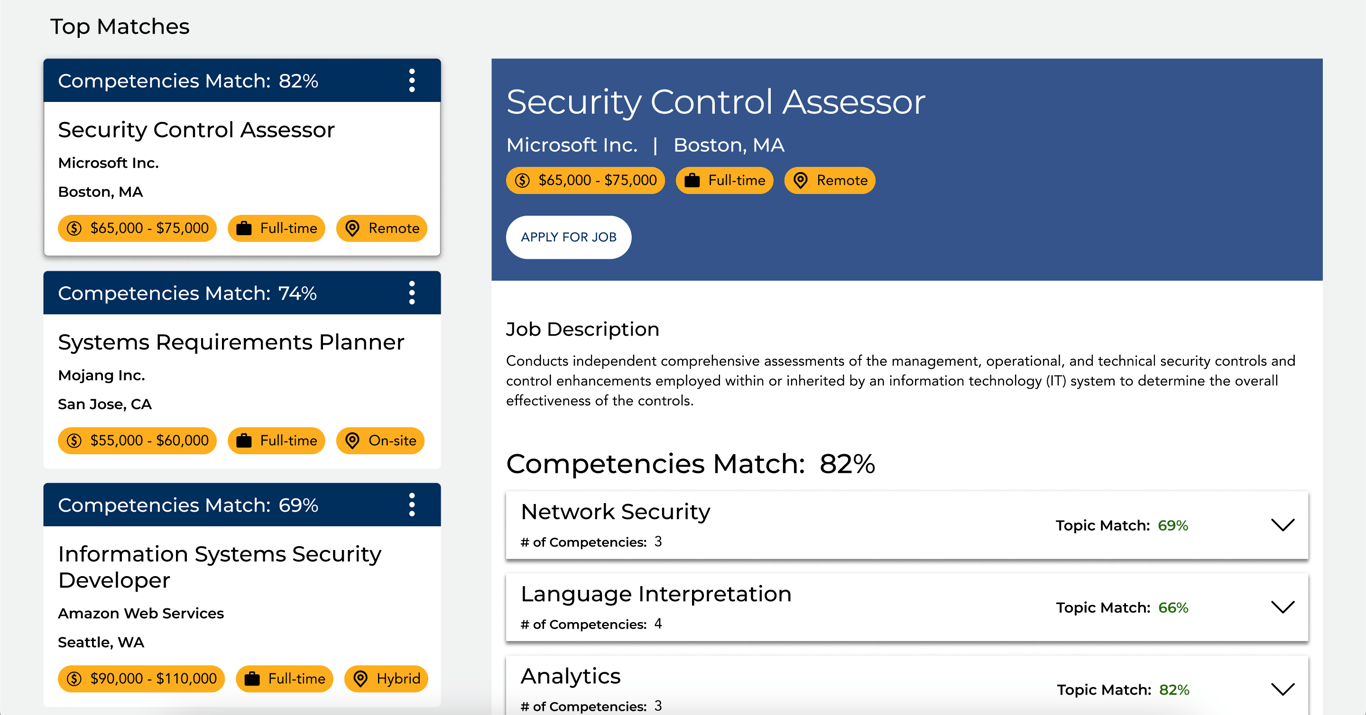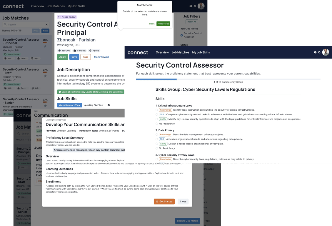 CONNECT is the culmination of hundreds of designs, thousands of hours of internal and user-facing discovery, and countless iterations of development and refinement. What started as a tool to provide job-seekers with a clear path to job qualification, eventually became the job-seeker empowering and employer enabling supertool that it is today.
